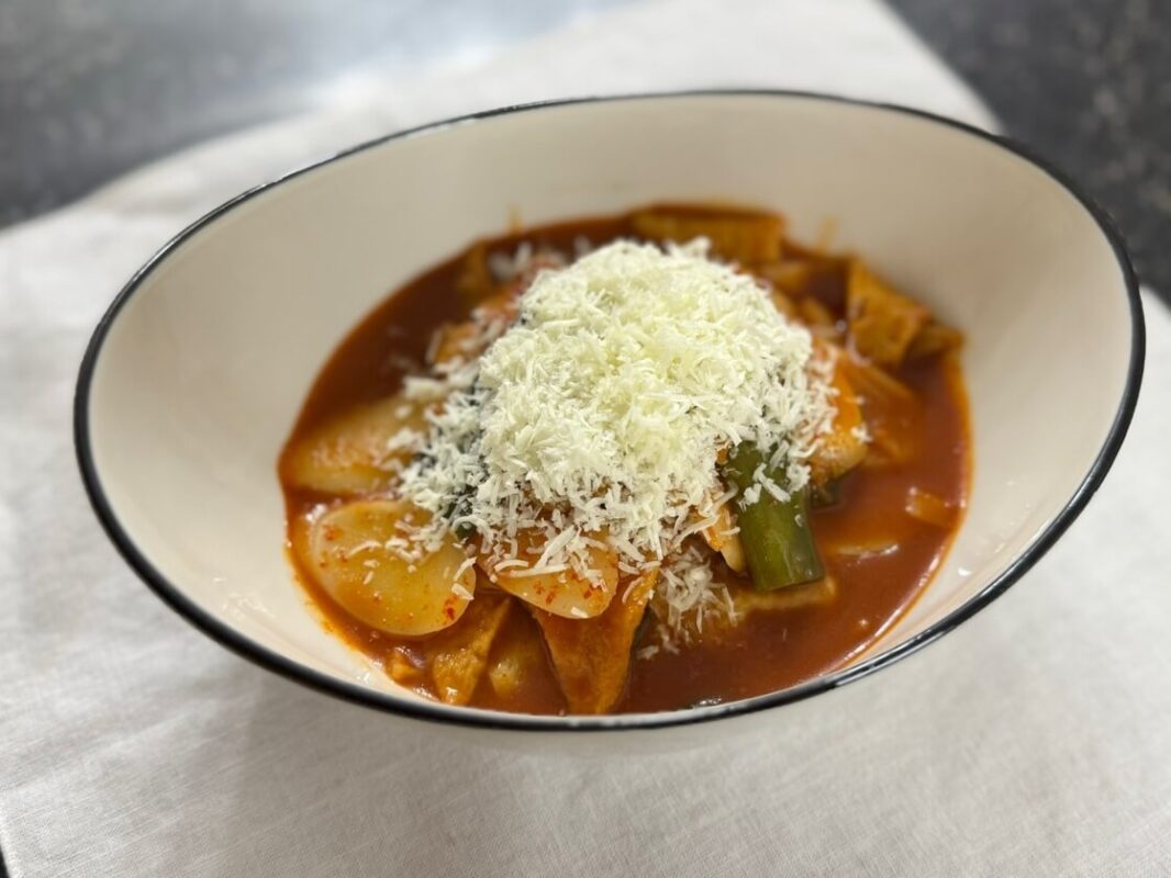 치즈를 추가하고 싶다면 냄비에 치즈를 올리고 뚜껑을 닫아 약 불에서 치즈를 녹여주세요. 입자가 작은 치즈를 사용할 경우 떡볶이를 그릇에 옮겨 담고 치즈를 그대로 올려 비벼주면 뜨거운 떡볶이와 국물에 자연스럽게 녹일 수 있어요. 또한 전자레인지에 돌려 치즈를 녹여도 괜찮아요.